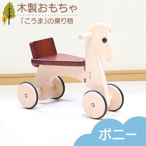 子供達が大好きな『こうま』の乗り物です。 ペダルは付いておらず、両足で蹴って前に進みますので、三輪車より早くから乗ることができます。 タイヤはエラストマー付きで幅があり、とても安定感があります。ハンドルは約50°しか回転し