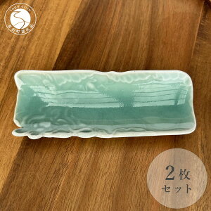 【ふるさと納税】有田焼 青磁睡蓮彫 茶則 四足長皿 2枚 セット【有田焼 花伝作】食器 器 うつわ お茶 和皿 小物入れ アクセサリー入れ おしぼり入れ インテリア 22000円 ...