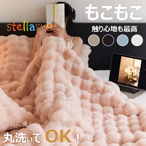 ラビットファー調ブランケットふわふわ、とろんとした質感がとっても気持ちいいラビット風のフェイクファーブランケット。極上の肌触りで、とろけるような肌ざわり包まれて眠る幸せ。丸洗いでOK!お家で丸洗いできて、お手入れが簡単