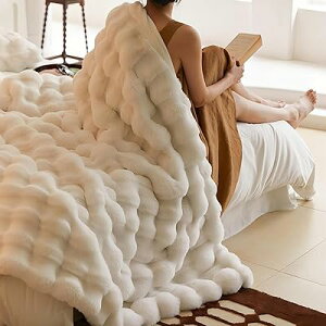 ブランケット 毛布 ダブル 冬用 厚手 2枚合わせ ふわとろ毛布 もこもこ毛布 あったか ラビットファー調 トスカ泡絨 洗える 吸湿速乾 抗菌防臭 蓄熱保温 極細繊維 (ホワイト・180*200cm)...