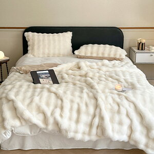 【ラビットファー調二枚合わせ毛布】表裹もラビットファー調生地(表側長い繊維、内側短い繊維)を重ねている二枚合わせ毛布、表地と裹地の間に空気層ができ、温かさをしっかりキープできます。他社のミンクファー調生地加工より暖かい...