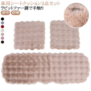 【車用シートクッション3点セット】【ラビットファー調で手触り】ラビットファー調で手触り!こだわりのカーシートクッションで、愛車をもっと!お気に入り空間に!しっかり長さがあり、なめらかでやわらかいファーがたまらない...
