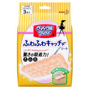 商品説明花王クイックルワイパーふわふわキャッチャーシート3枚は驚きの吸着力!ふわふわの長い毛足が床のホコリ・髪の毛・微細なハウスダストまでひとふきですばやく、たっぷり吸着!お部屋のすみや床の溝にもフィットしてすみずみの
