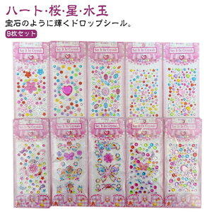 宝石のように輝くドロップシール。【ハート・桜・星・水玉】【9枚セット】【立体的なデザイン】ぷっくりとした立体造型が可愛いPVCシール! 指で触れるたびに感じるふくらみと、色あせない鮮やかさが特徴です。お子様の持ち物に貼れば