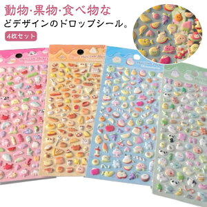 動物・果物・食べ物などデザインのドロップシール。【4枚セット】【立体的なデザイン】ぷっくりとした立体造型が可愛いPVCシール! 指で触れるたびに感じるふくらみと、色あせない鮮やかさが特徴です。お子様の持ち物に貼れば愛着が湧