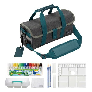 ●セット内容: バッグ、エフ水彩12色(ポリチューブ入り)、画筆(ネオセーブル6号・14号)、パレット、大型筆洗バケツ、筆ケース、スポンジ ●サイズ/重さ:330×119×160mm/860g ●材質:バッグ:PA 筆洗:PP パレッ...