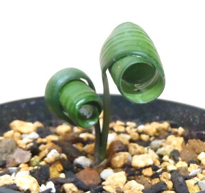 「君子蘭 葉巻王 実生2年生 3号ポット 1株」は、非常に珍しい個体で、葉がくるくると巻き込む芸を見せます。葉の緑が濃く、葉先は強く巻き、葉のもとのほうはうねるように伸びる葉変わり品種です。 〔 商品性状につきまして 〕