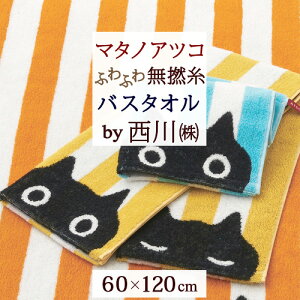 [20日16時~8H] マタノアツコ バスタオル 60×120cm 西川 綿100% 無撚糸 またのあつこ MEMEストライプ 黒猫 子猫 可愛い やわらかい タオル かわいい ...