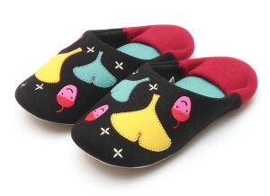 にっこりどんぐりの刺繍とイチョウのアップリケがかわいいバブーシュタイプのルームシューズ。季節を感じるイチョウの葉っぱをデザインのモチーフにして、ルームシューズに仕立てました。インテリア映えするカラフルな色使いも特徴的