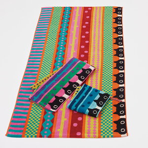 ◇約34×75cm ◇綿100% ◇日本製 ◇無撚糸で肌触りの良いタオル。カラフルなパターン&カラーがお部屋を楽しく彩ります。
