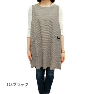 ◇サイドネックポイント丈90cm ◇綿100% 天竺 ◇中国製 ◇綿100%天竺素材を使った杢ボーダー柄キッチンエプロン。黒猫のワンポイントが可愛いです。