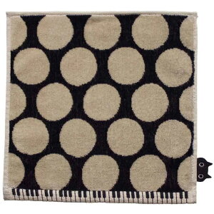 Atsuko Matano 水玉鍵盤 タオルハンカチ。 ブラック×ベージュのドット柄がシックでおしゃれなデザイン♪ ふちの鍵盤デザインとひょっこり顔を出した黒猫MEMEがキュートなアクセント! 水玉の大きさが違うだ