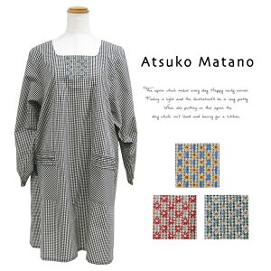 俣野温子さんの世界を表現した「Atsuko Matano」よりギンガムチェックと花の刺繍が大人かわいい割烹着が登場♪ ポケットにはフリルデザインが施されていて細部まで拘りが詰まっています☆更に丸い裾ラインと腰紐結びで後ろ姿もかわいい◎