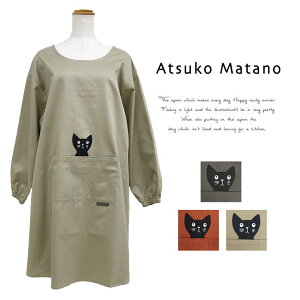 俣野温子さんの世界を表現した「Atsuko Matano」よりかつらぎのひょっこり黒猫の割烹着が登場♪ポケットから覗く黒猫のなんとも言えない表情がかわいいデザインです◎ 袖口がゴム入りなっているので家事や掃除の際に大活躍間違いなし★ バ