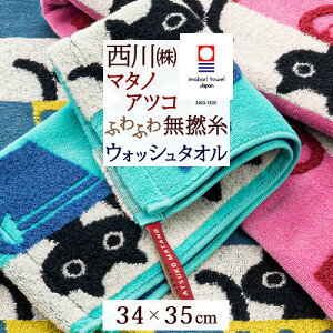 マタノアツコ 今治タオル ウォッシュタオル 34×35cm ループ付き 西川 綿100% 無撚糸 またのあつこ アツコマタノ カップMEME 黒猫 可...