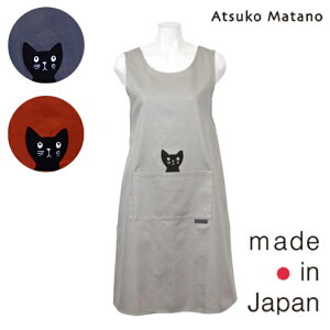 マタノアツコの定番黒猫エプロン。大きな前ポケットからかわいい黒猫がひょっこり♪シンプルだけど見ていると気持ちがほっこりするエプロンです。 ※画像二枚目からは参考画像として別カラーのものを使用しています。 【仕様詳細】 ポ