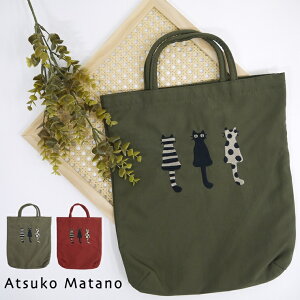 俣野温子さんの世界を表現した「Atsuko Matano」より刺繍のかわいさに心ときめくナイロン素材のトートバッグが登場しました♪ 落ち着いた大人っぽい色味に3匹並んだ猫の刺繍シルエットが魅力的♪ボーダーや水玉模様でこなれ感UP★垂れたし