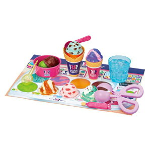 お湯と氷水で何度でも色が変わる不思議なアイスクリーム! 本物のサーティワンアイスクリームみたいなアイスクリームがつくれます。 コーンやアイスクリームカップにアイスクリームをもりつけて、シロップとかけると別のアイスクリームに変わっちゃう!