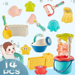 商品説明豊富な14個セット:バケツスコップ熊手じょうろふるいなどが入った、パステルカラーの色合いがキュートな14点セット。子供が砂や水遊びながら楽しんで色を認識できます。砂型では海の生き物(カニ、カメ、たこ、海星など)のほ