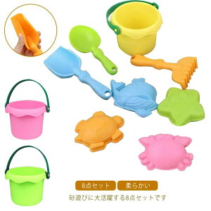 砂遊びに大活躍する8点セットですお砂を掘る、盛る、お水をすくう、運ぶなどこれさえあれば、すぐにあそびがはじまります。砂場、ビーラなどの海辺と室外だけてなくお風呂、お庭、雨の日に室内て遊んても♪柔らかいPVC素材なのに、割れ