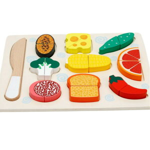 型はめが付いた、色々な種類の食材や果物が詰まったままごとセットです。デスクの上に野菜やくだもの、食材をのせて、包丁でサク!サク!マグネット式なので面ファスナー式のおままごとと比べて消耗が少ないため、保育園や幼稚園...