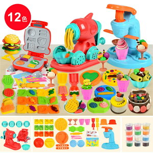 【超豪華セット】12色粘土・ローラー・押し型・ソフトクリームメーカー・ハンバーガーメーカー・製麺機など様々な道具がつています!粘土でいろんな形を作れるのが魅力的です〜こねたり、へらできったりして、手先の器用さを役立ちま
