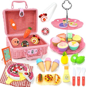 VBACALA おままごと おままごとセット 43PCS ピクニック キャンプおもちゃ 2層ケーキスタンド アイスクリーム 果物 デザート パン アフタヌーンティー ごっこ遊び 屋内遊び キッチンおもちゃ...