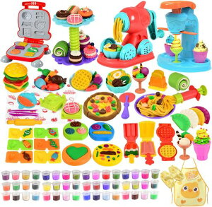 【超豪華セット】48個粘土・ローラー・押し型・ソフトクリームメーカー・ハンバーガーメーカー・製麺機・デザートテーブルなど様々な道具がつています!自由に形を変えられる、ねんど。ハートの形、餃子、バンズ、キャンディー、アイス