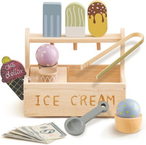 ロールプレイ: この木製アイスクリームセットで、お子様はアイスクリーム屋さんごっこが楽しめます。お店屋さんとお客さん役を交代しながら、簡単な計算やお金の概念を学べます。家族やお友達とのコミュニケーション能力を育む...