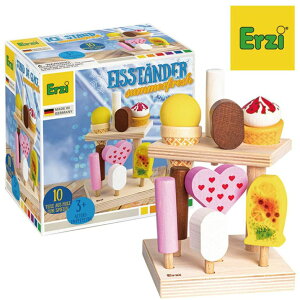 Erzi(エリツィ)のアイスクリームディスプレイセット 4941746827130 おしゃれでかわいい、ヨーロッパの木のままごと玩具。 豊かな色彩の食材に、リアルに再現されたパッケージデザインが特徴的...
