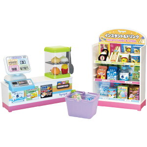 小物パーツがたくさん入った、コンビニエンスストアをテーマにしたミニチュアショップです。マイメロディとクロミのドールが付属し、レジカウンターでお店屋さんごっこのやりとりをしたり、カゴに好きな商品を入れて買い物ごっこを楽。