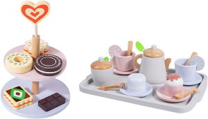 [インタラクティブな遊び体験]: この木製のアフタヌーンティーおもちゃセットは、子供たちが友達と日常生活のシミュレーションを楽しむことができ、想像力豊かな遊びを通して基本的な生活スキルと知識を学ぶのに役立ちます。 [デザイン]: 美し...