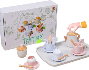 【素敵なギフト】: この子供用ティーパーティーセットは、お子様やごっこ遊びが好きな方への誕生日プレゼントにも最適です。 【子供のごっこ遊び】:木製コーヒーカップセット食器はキッチンごっこ遊び用のゲームおもちゃです...