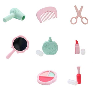 説明: 【コンプリートセット】女の子向けごっこメイクキットには、口紅、チークパレット、ブラシ、鏡、メイクブラシ、香水ボトル、ヘアドライヤーが含まれます【素材】キッズビューティーセットは、お子様が遊べるシリコン素材で作ら