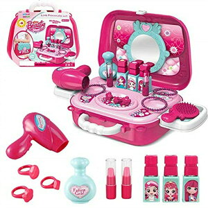 【セット内容】ドレッサー本体、ドライヤー、カールアイロン、アイシャドウ、おしろい、リップ、香水、マニキュア、パフ、小物13点付き。多彩なデザイン&快適な使用感:ドレッサーセット一式は明るい色で、子供部屋やプレイルームの装飾品として最適...
