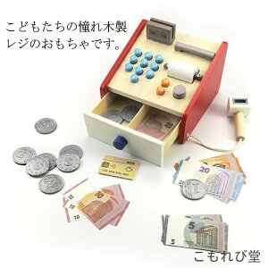 【完成品/天然木使用】ぬくもりのある木製のレ 、お子さまが喜ぶかわいいデザイン。お札やカード、コインもセットなので、すぐに遊ぶことができ、お誕生日のプレゼントにも最適なアイテムです。レを使って遊ぶことで、お買い物の仕方