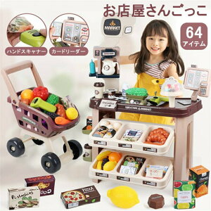 商品説明商品特徴 総アイテム数64点のボリューム満点お店屋さんごっこセットです。カートやお金も付属していて、本格的なお店屋さんごっこが楽しめます。憧れのバーコードリーダーは光って音が鳴ります。レジのディスプレイは360°回転