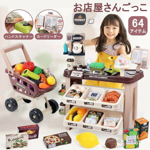 商品説明 商品特徴 ・総アイテム数64点のボリューム満点お店屋さんごっこセットです。 ・カートやお金も付属していて、本格的なお店屋さんごっこが楽しめます。 ・憧れのバーコードリーダーは光って音が鳴ります。 ・レジのディスプレイ