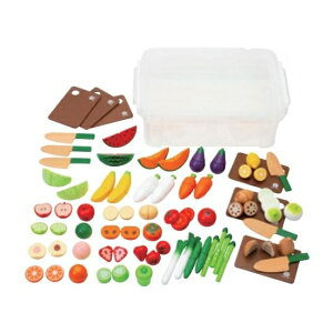 色鮮やかなお野菜がはいった木製おままごとセットです。 付属の包丁とピーラー、まな板を使って遊べます。サクッと切れば本当にお料理しているみたい。 おままごとを通してコミュニケーション力や想像力、集中力を養います。●対象年齢:3歳以上 ●...
