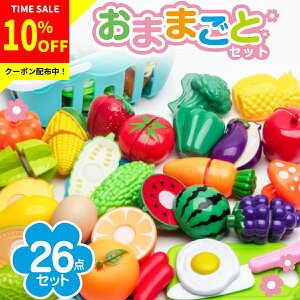 【商品説明】26種類入りのおままごとセット 【商品内容】野菜、フルーツ、食器、包丁&まな板、カゴのセット 【商品の特徴】野菜、フルーツは切ってまたくっ付けることが出来るので、何度でも遊べます。 【注意点】1つ1つのアイテムは大