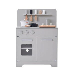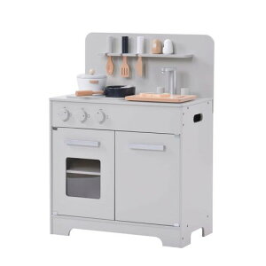 適度な大きさのシンクのセット。遊びの中で食材を洗い、清潔感を育みます。上部にはヘラやスプーンなどの調理器具を掛けられるフックが3つ付いています。付属品:フライパン鍋調味料