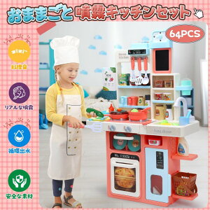 【豪華な64点セット】大きな台所本体、野菜、果物、調味料、キッチン用具、調理器具などバリエーション豊な64点セットで、お子様一人でも 、お友達や家族と一緒に楽しく遊びます。 【リアルな料理雰囲気】リアルな噴霧...