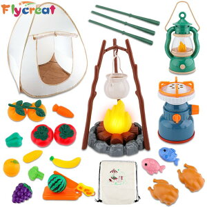 【本物のキャンプ体験が楽しめるおままごとセット!】 Flycreat 子供キャンプ おままごとセットは、本物のキャンプ体験を楽しむための理想的なおもちゃです!かがり火と露?ランタンが電池で点灯し、リア...