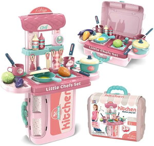 【収納式キッチンセット】小さいサイズに収納できるので、持ち運びが便利です。ピクニックみたいに遊べます。セット内容:本体*1 プレート*4 お鍋*1 フライパン*1 BBQクリップ*1 調味料*3 エンドウ豆*1 ブロッコリー*1 きの...