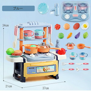 組み立て後サイズが93.5cm*71cm*28cmキッズキッチン(蒸気・水・音・光の出るおままごとキッチン) ●本格的なおままごとを体験できます(蒸気・水・音・光の出る・エッグスチーマー付き) 【カラー】:ブル...
