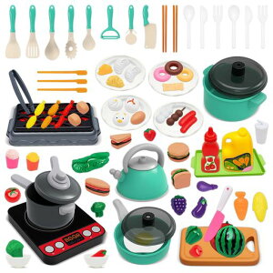 【豪華108食物のように、収納バスケット、果物、野菜、揚げた料理、調理器具、圧力鍋、お鍋、フライパン、ケットル、食パン、飲み物、などいろいろあります。日常生活やダイニングシーンを再現し!お子様に料理の楽しみを体験させて...