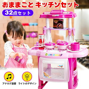 ●商品説明 ・動き、音、光で豪華なおままごとキッチンセット: 可愛い鍋、フライパン、フライ返し、蛇口、コンロ、調味料、食器など32点セットで、電池(別売り)をいれて、ガスレンジスイッチをくるくるまわって...