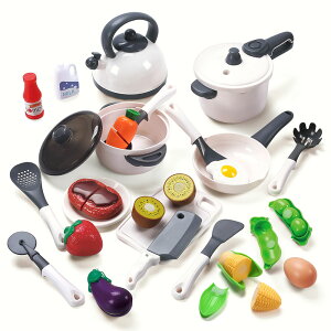 【おままごと 調理セット】リアルな調理器具、食材を切ることで、料理人ごっこに夢中しよう!セット内容:圧力鍋*1 お鍋*1 フライパン*1 ケットル*1 調理器具*6 ナイフ*1 プレート*2 まな板*1...