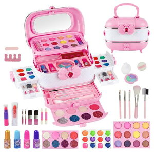 色が付けるメイクおもちゃ:子どもに向けてのメイクアップセットです。水性で肌に優しい素材を使用し、あんしんして遊ぶことができます!カラフルなアイシャドー・チーク・リップ・ネイルなどの小物がセットになっているので、メイクに