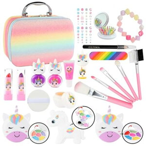 メイクセットこども:この子供用化粧品セットは22点が含まれています。口紅x2、リップクリームx1、ファンデーションx1、リップグロスx1、ユニコーンリップグロスx1(6色)、マニキュアファイルx1、メイクブラシx5、アイライナーx1、...